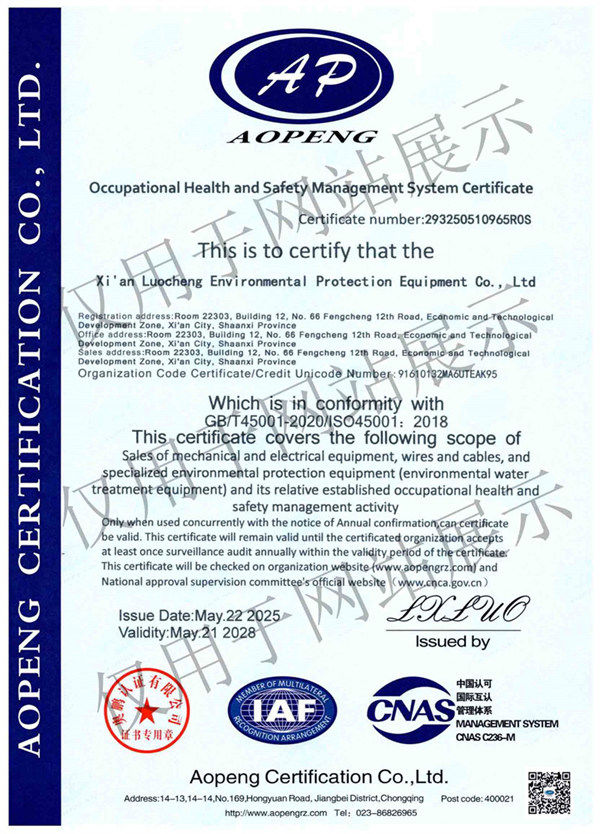 職業(yè)健康安 全管理體系認 證證書